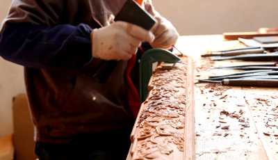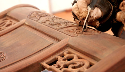 流程三雕刻工序 為了讓紅木家具看上去更美觀,在木工工序完成之后一般都會用一些或簡單或復(fù)雜的雕花來進(jìn)行裝飾,也就是行業(yè)中所說的雕刻紋飾。雕刻紋飾必須在“認(rèn)榫”完成后進(jìn)行,因?yàn)椤罢J(rèn)榫”時(shí)需要修整,如果先做好雕花再開榫,紋理很難保證雕花部件都在同一平面上,而此時(shí)為了保證雕花...