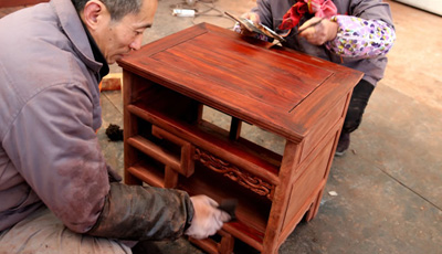 流程二木工工序 板材干燥完成后,就可以進(jìn)入正式的制作工序了。這一步是紅木家具制作最主要的步驟,也就是紅木家具制作廠家所說的木工工序。